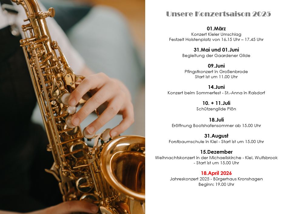 Viele Vorbereitungen laufen bereits für die Konzertsaison 2024 und zusätzlich werden wir an den Wertungsspielen im September in Schleswig starten.